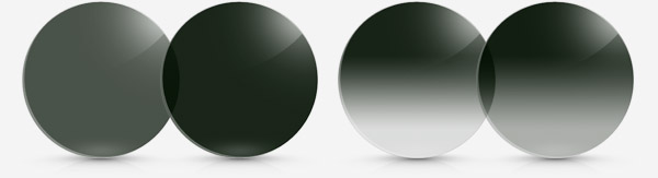 Tyto tři barvy jsou k dispozici v pěti odstínech intenzity, od 12% do 85%. Hnědé a šedé čočky se dodávají také ve fotochromních (samoskládacích) verzích. Intenzita odstínu se proto automaticky mění v závislosti na síle slunce, a to i za čelním sklem.
